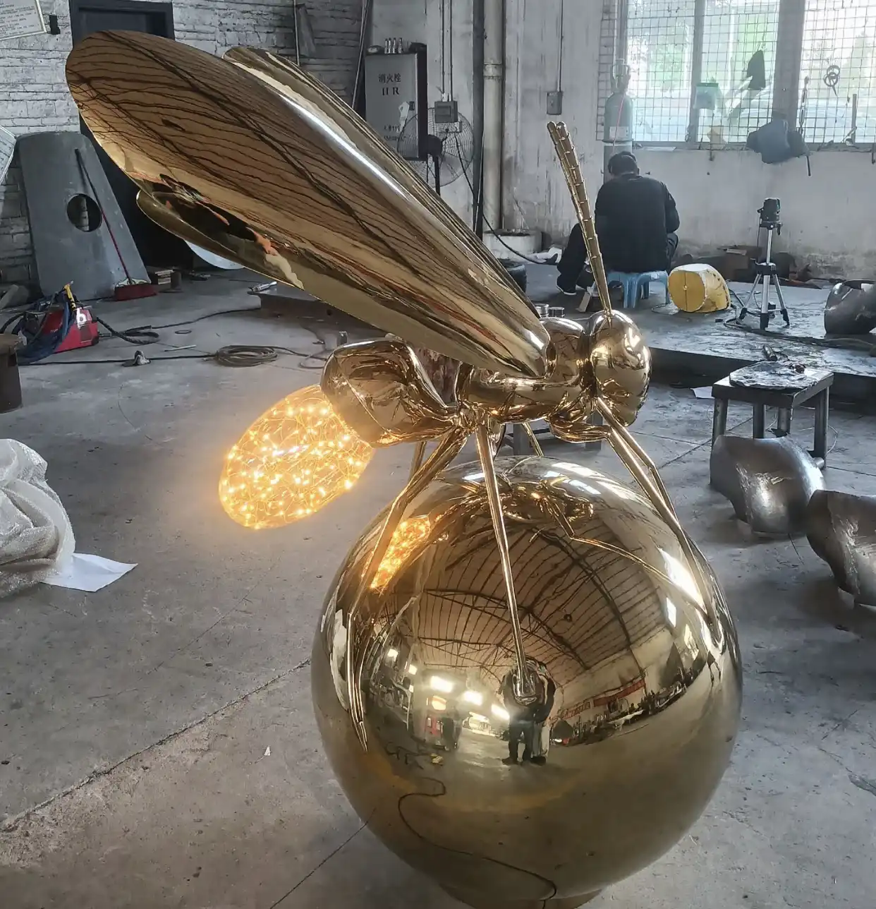 Stainless Steel Mirror Electroplated Surface Firefly Sculpture with Glowing Buttock China Factory Supplier